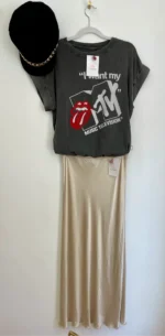Camiseta rockera perfecta para llevar tanto con falda satinada y botas moteras, como con pantalones de vestir y zapatillas deportivas (si encima le añades una gorra te quedará espectacular) o también con vaqueros.