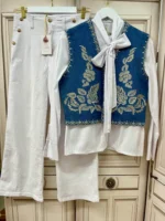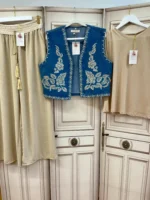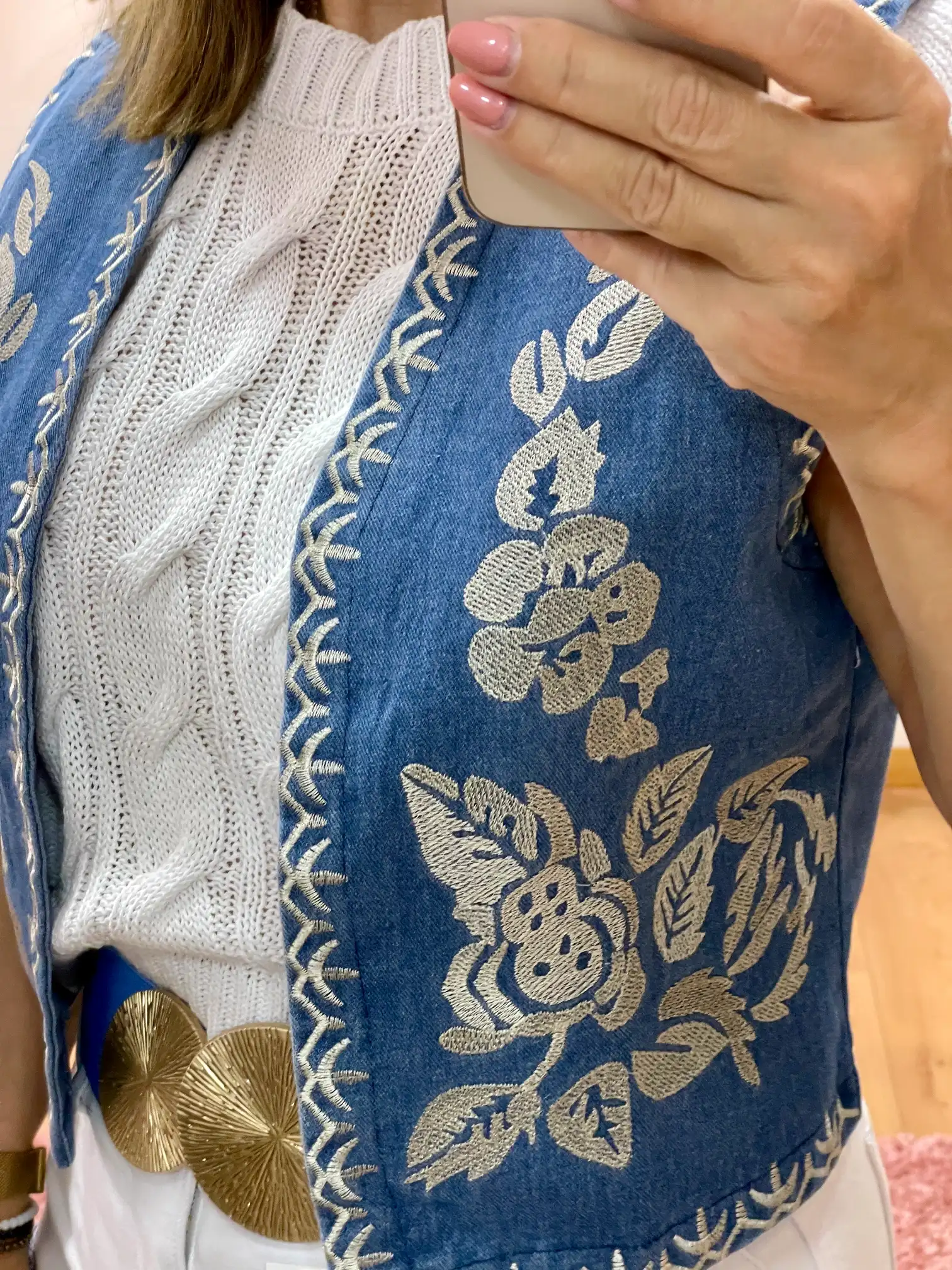 El chaleco en tejido más bonito de la temporada. Lleva todos los bordados en tono plateado