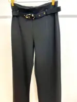 pantalón de vestir muy cómodo. Es elástico y lleva goma en la cintura. Camal recto. Talla alto. Tiene un cinturón con detalles en dorado. Largo aproximado desde cintura 103cm
