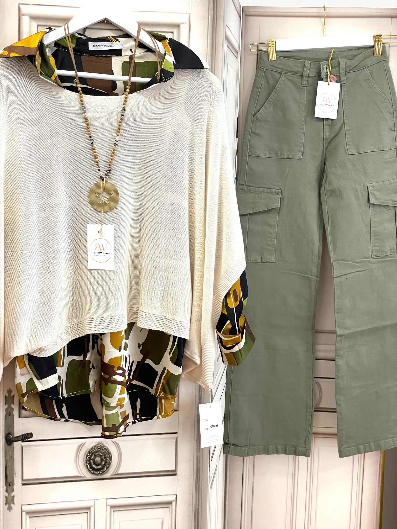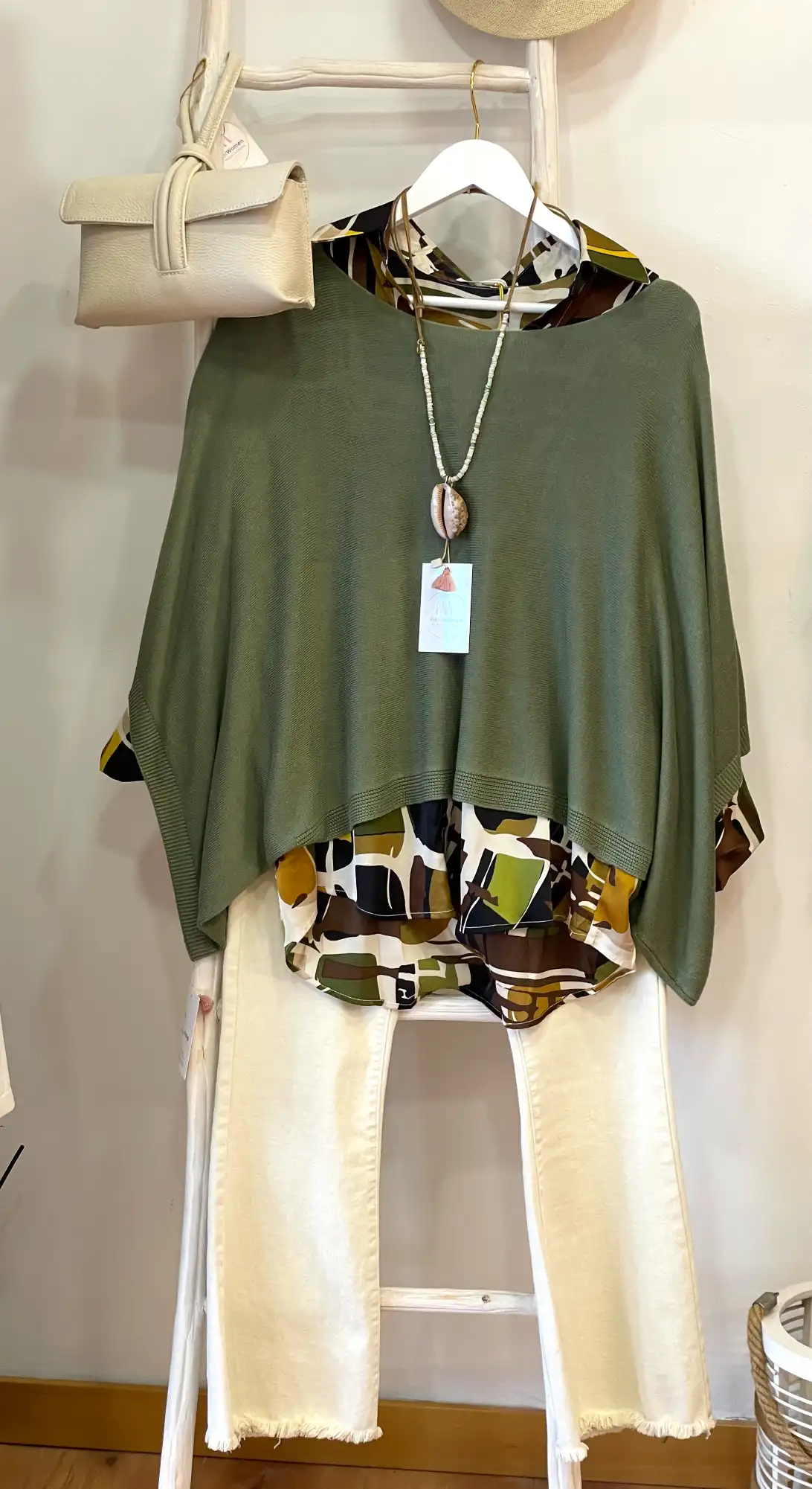 Poncho de punto. Es muy amplio y súper combinable con cualquier outfit