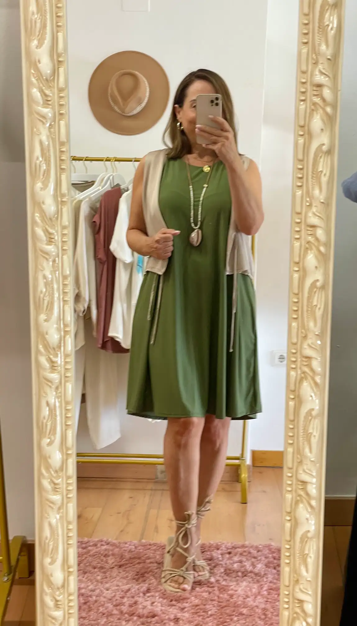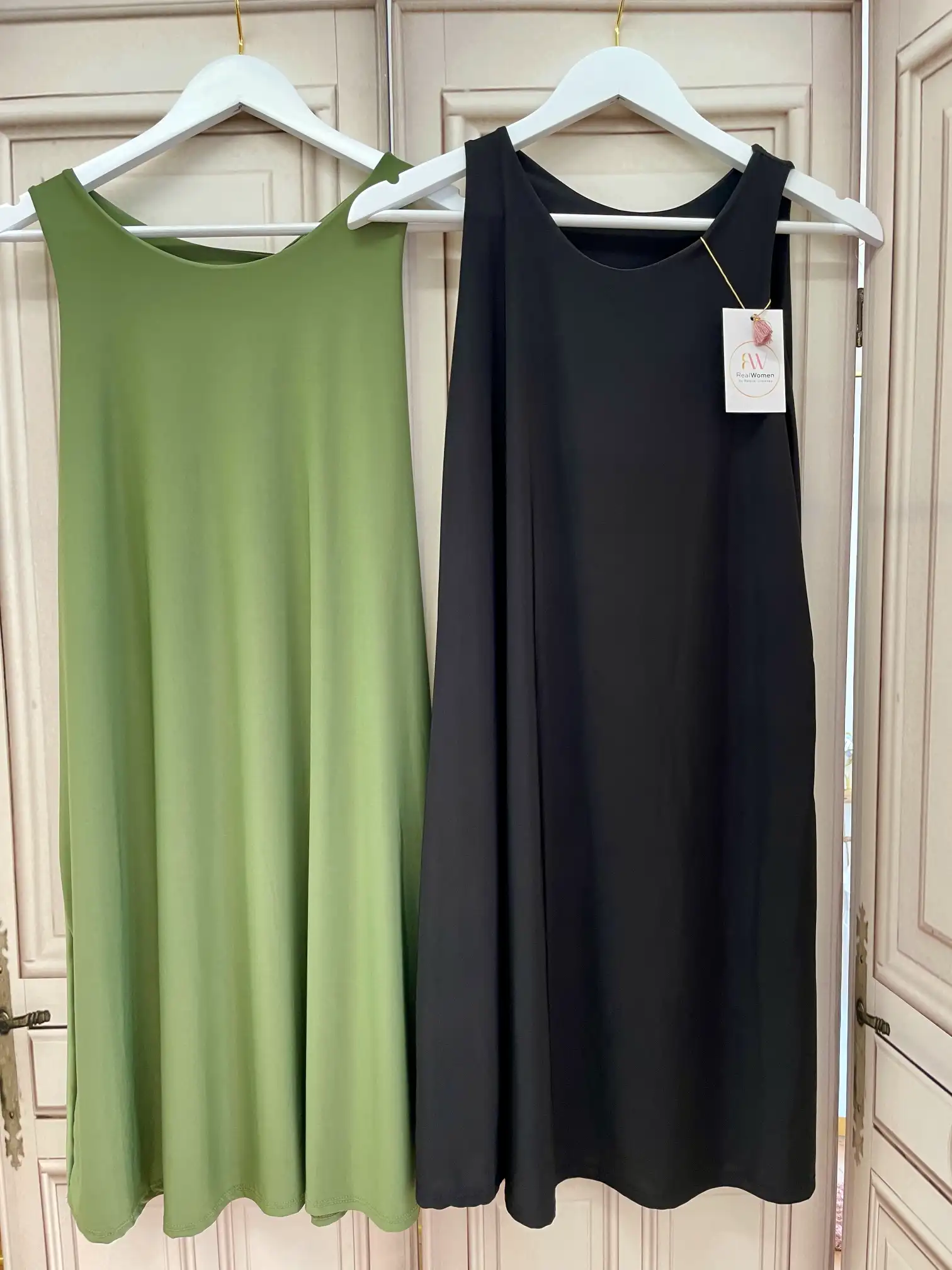 Vestido corte trapecio de lycra fría.  Escote redondo y tirantes estilo nadadora
