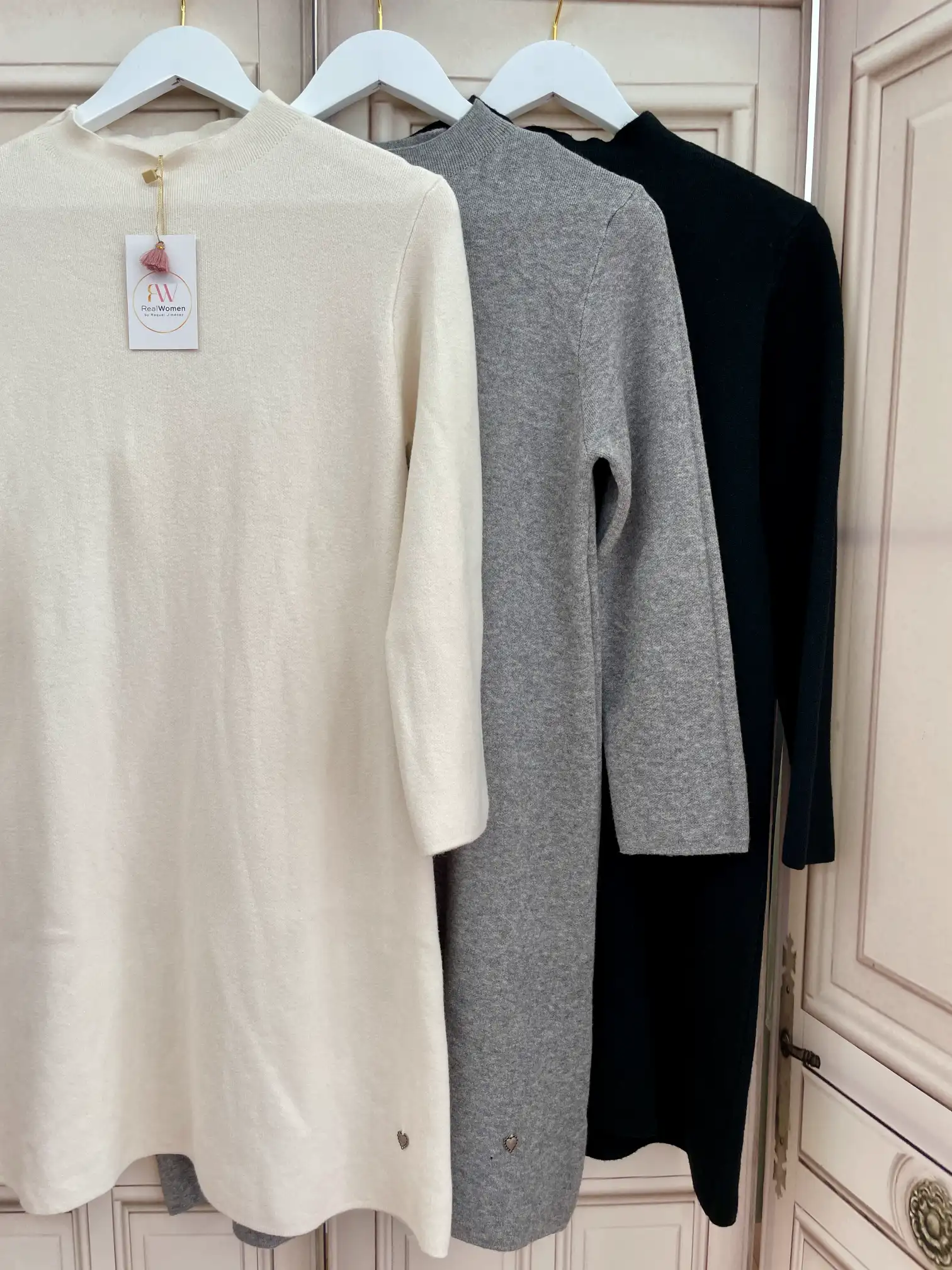 Vestido de punto de corte recto. Largo aproximado desde el hombro: 82 cm. Disponible es marfil, gris y negro